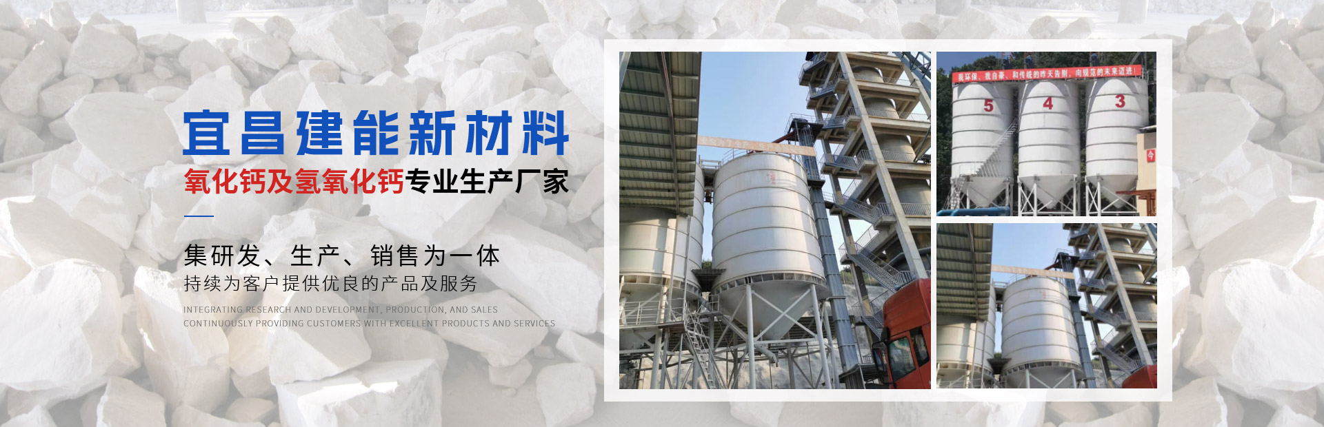 宜昌建能新材料有限公司 地址位于湖北省宜都市姚家店鎮(zhèn)油榨坪村二組,交通便利。我們公司是一家專業(yè)從事石灰研發(fā)、生產(chǎn)、銷售為一體的高科技生產(chǎn)型企業(yè)。公司采用優(yōu)良石頭資源,出產(chǎn)的石灰品質優(yōu)良,主要經(jīng)營產(chǎn)品有石灰石、石灰塊、石灰石粉、氧化鈣、氫氧化鈣、母料專用灰鈣粉、建筑用石、方解石粉、重晶石粉等。 公司生產(chǎn)的石灰、碎石等產(chǎn)品,以優(yōu)良的產(chǎn)品質量,獲得了不少客戶的信任。 公司秉承“誠信、優(yōu)質、共贏”的經(jīng)營理念,堅持用戶至上、服務優(yōu)先原則,用心解除客戶所憂;以科技服務和好的產(chǎn)品服務客戶;始終堅持以“想顧客之所想,急顧客之所急”的經(jīng)營理念,不斷前行......